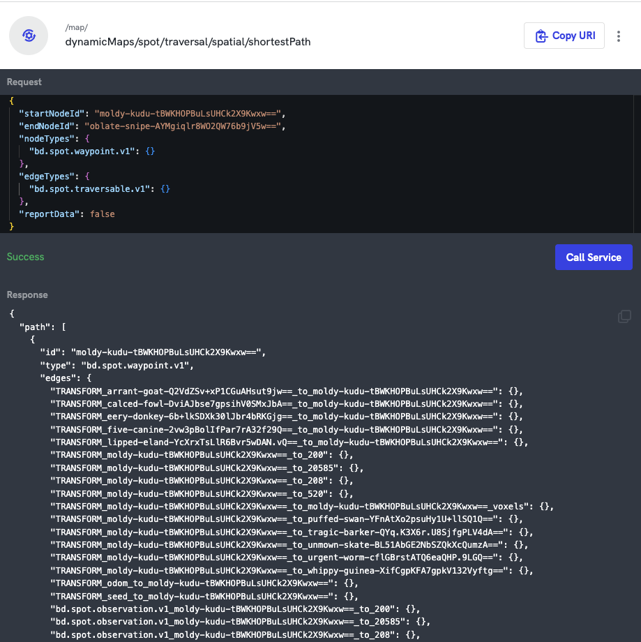 Here the traversal has been set up to only traverse between bd.spot.waypoint.v1 nodes and only along bd.spot.traversable.v1 edges.